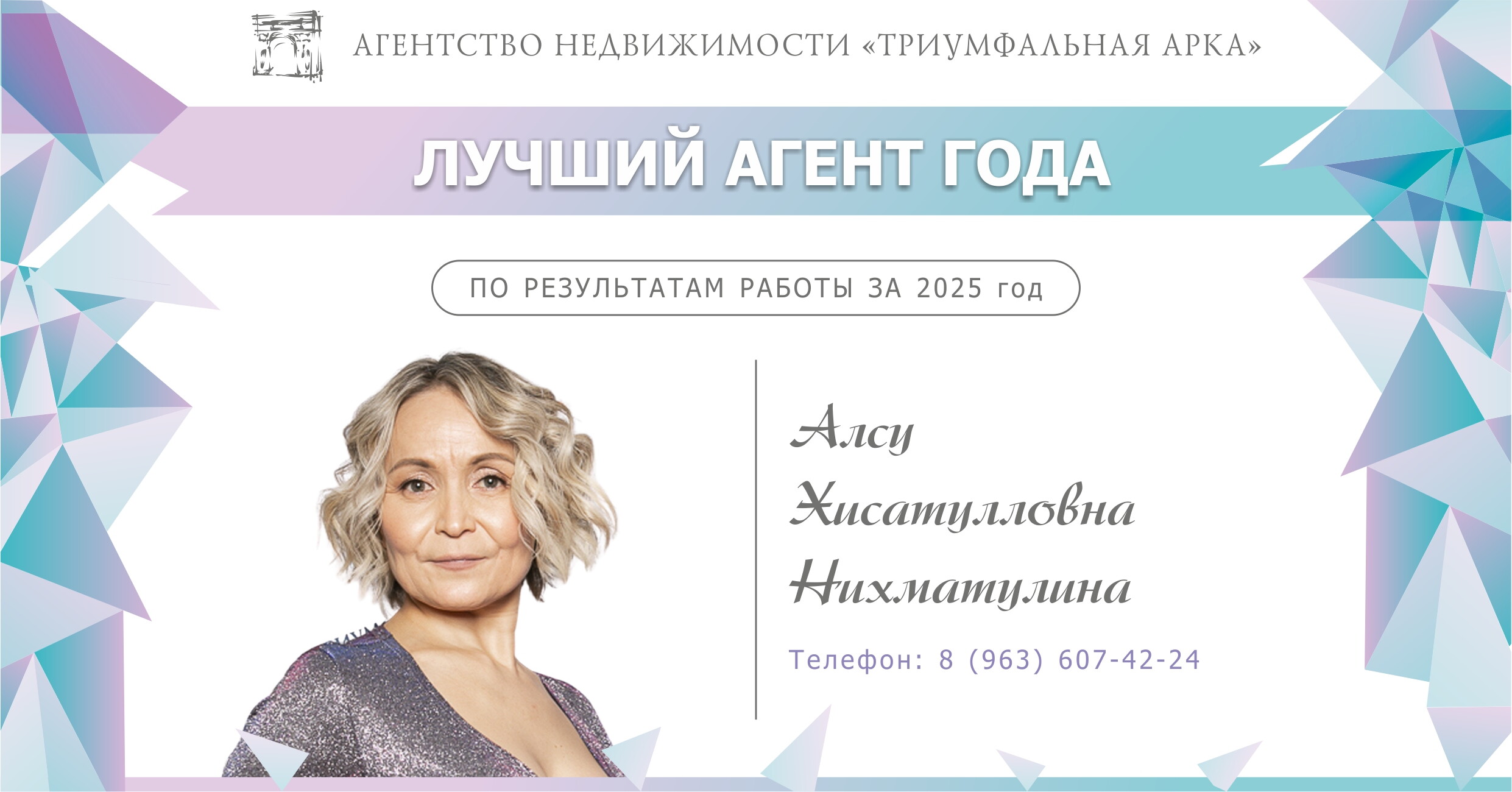Выражаю свою благодарность работнику агентства Триумфальная арка Григорян Соне Григорьевне за отлично выполненную работу по продаже квартиры в Москве. Хочу отметить её высокий профессионализм, порядочность, поддержку, проявленные в работе.